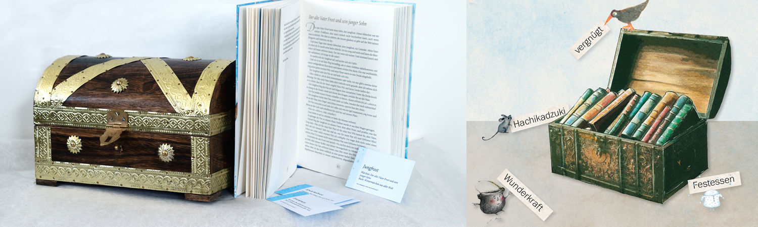 Die Schatzkiste ist voller spannender Worte. Jedes Wort stammt aus einem Märchen und dieses findet sich in einem Buch. Wer die Geschichte gelesen und das Wort gefunden hat, darf ein neues Schatzwort ziehen.